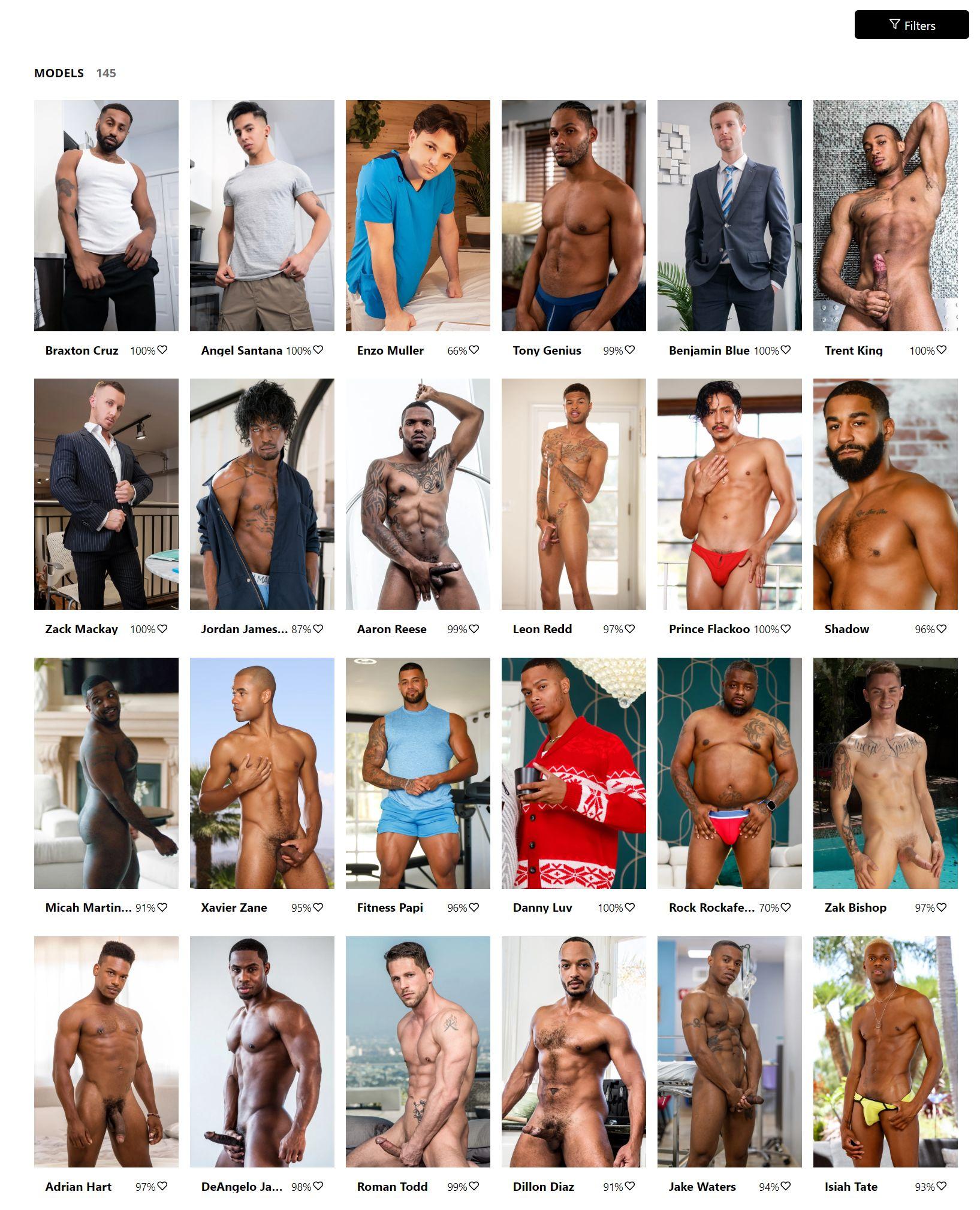The members’ area is easy to navigate. The menu carries three main area, the Videos, the Library and the Models. Each of these has a filter option drop-down. The model index, for example, lets you see either top models or the whole bunch of 3,819 guys. The Library gives you your unlocked sites, plus the list of others you can unlock with a further payment. Once you arrive at an index page, you find loads of handy filters. There may be 3,819 guys in the model index, but if you then filter by ‘my content’ and click in the search box to bring up the list of sites, you find 145 guys specific to Noir Male.